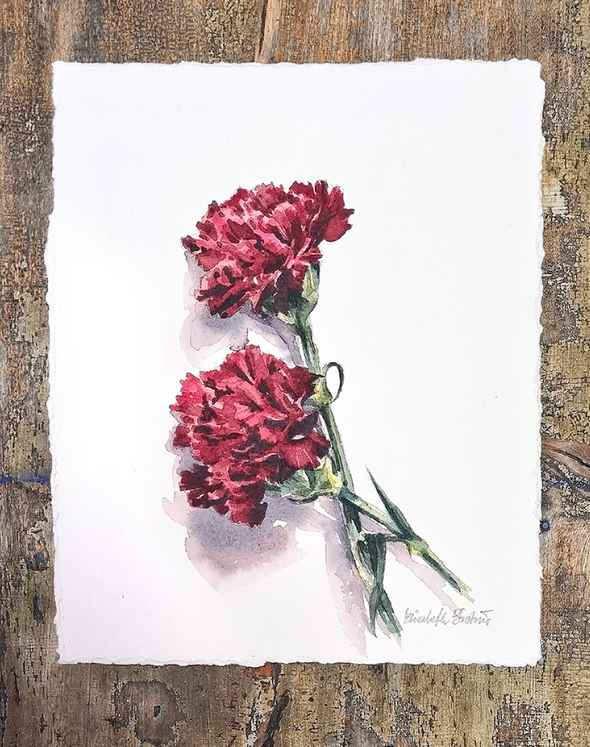 Akvarell, "Nejlikor", av Elisabeth Biström