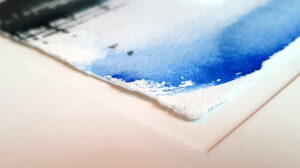 Detaljbild av akvarellen “Stilla yta”. Monterad i ram med passepartout.
